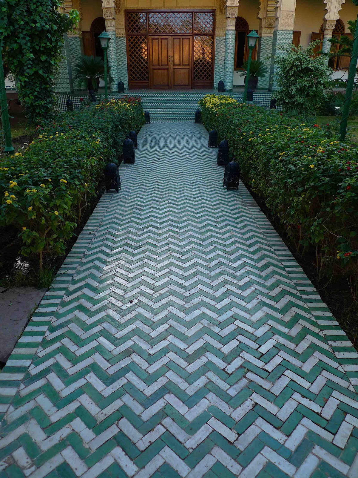 | Green and White Zigzag glazed tile walkway, Marrakesh |